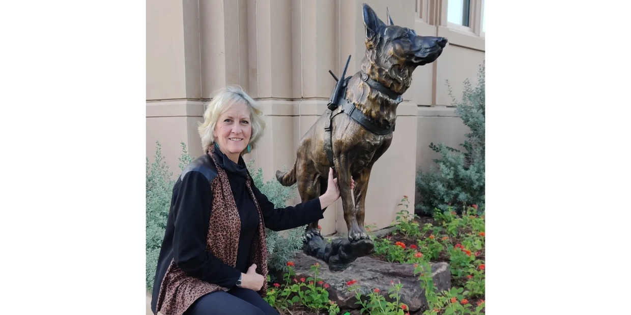 "Send Me" is the title of the sculpture, and it depicts Lucca standing proudly in her full glory, wearing her harness, ready for work. This monument stands proudly at the end of the Alice Walton Sculpture Garden at the National Cowgirl Museum and Hall of Fame in Ft. Worth, TX, across from the Dickies Arena.